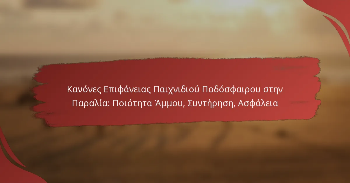 Το ποδόσφαιρο στην παραλία απαιτεί μια προσεκτικά διατηρημένη επιφάνεια άμμου για να διασφαλιστεί τόσο η βέλτιστη παικτικότητα όσο και η ασφάλεια των παικτών. Κύριοι παράγοντες όπως το μέγεθος και η σύνθεση των κόκκων άμμου, μαζί με τις τακτικές πρακτικές συντήρησης, είναι απαραίτητοι για τη δημιουργία ενός ασφαλούς και ευχάριστου περιβάλλοντος παιχνιδιού. Επιπλέον, η εφαρμογή μέτρων ασφαλείας, συμπεριλαμβανομένων των επιθεωρήσεων κινδύνου και της ετοιμότητας πρώτων βοηθειών, είναι ζωτικής σημασίας για την προστασία των παικτών από τραυματισμούς κατά τη διάρκεια των αγώνων.